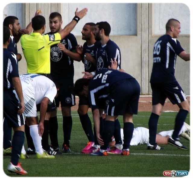 באו בטענות לשופט. שחקני ערד בסיום (צילום: אייל אורן)
