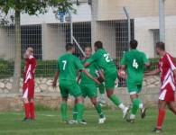 ניר טהר לב (באדום) מאורנית דוהר לשער וויליאם פאנוס מגדנ"ע סוגר אותו (צילום: לירן דורף)
