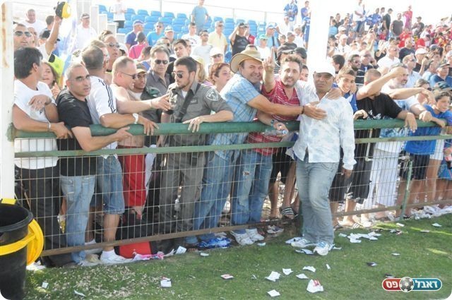 אבו רקייק עם אוהדי אילת. מחזור אחרון מותח במיוחד (צילום: יהב אלון)