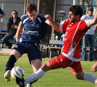 אודי כבודי(בכחול)ויוסי משיח משיכון רוצים כדור.(צילום:אמיר דבי)