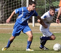 כובש שער הנצחון עידו רצון(בכחול)ויוסי רץ מהבקעה רוצים כדור.(צילום:לירן דורף)