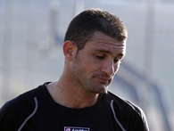 עופר שיטרית באחת הנגיעות הבודדות שלו בכדור,לא קאמבק מוצלח לחלוץ הותיק.(צילום:אנס אבודעבס)