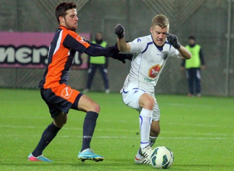 בדקה ה-43 הגיע הרגע המשמעותי הראשון במשחק כשהררי הוציא פס רוחב משמאל לקרגולה שבעט כדור חזק מ 14 מטרים שננעץ בבירור בידו של גומברג המקומי. ליפו הגיע בוודאות פנדל אך קרפינסקי טען ליד צמודה (שלא הייתה) וסימן להמשיך.