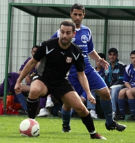 יונס בדיר(בכחול)מנסה בכל דרך אפשרית לעצור את רפי כהן.(צילום:לירן דורף)