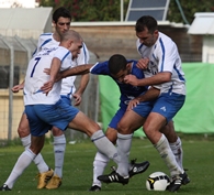 איציק בוחבוט(11 בלבן),בהחמצה מזעזעת,היום במגרש השקמה.(צילום:לירן דורף)