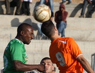 אוסמה אלקשאעלה(בירוק) מקדים את נתנאל בן לולו מדימונה לכדור.(צילום:אנס אבודעבס)