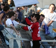 רן פוליקר על הגדרות,חוגג עם האוהדים.(צילום:לירן דורף)