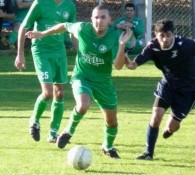 לירן נהרי (עם הכדור ) מבית"ר אורנית באחת ההתקפות של קבוצתו שלא הניבו שער (צילום:בועז רביד)
