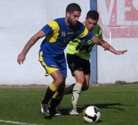 עגייב (14 בכחול) מול עידן ששון (14 בצהוב) - החליף את יוסי פליקר בהרכב.(צילום:גיא גולדפרב)