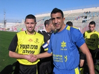 שני הקפטנים,אחמד עארף(בכחול) וחן קקון מאסי בלחיצת יד משותפת.(צילום:אתר goool)